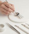 What is the Holding Plate System? It's a special technique that allows silver jewelry to have moving parts, such as a pendant with swinging legs, earrings with dangling elements that sway with movement, or a ring that spins.
