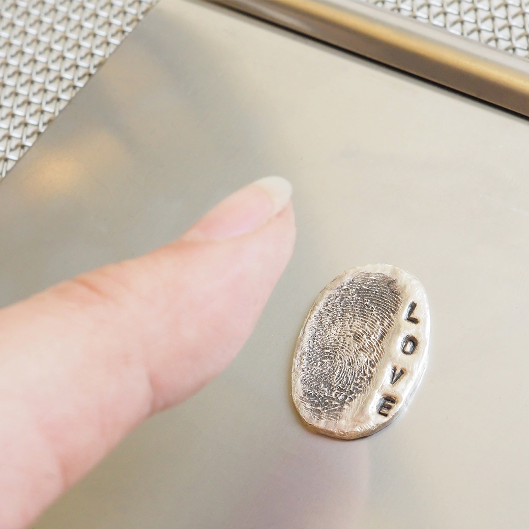 We recommend the technique of "Fingerprint Imprinting" directly onto the fresh silver clay.