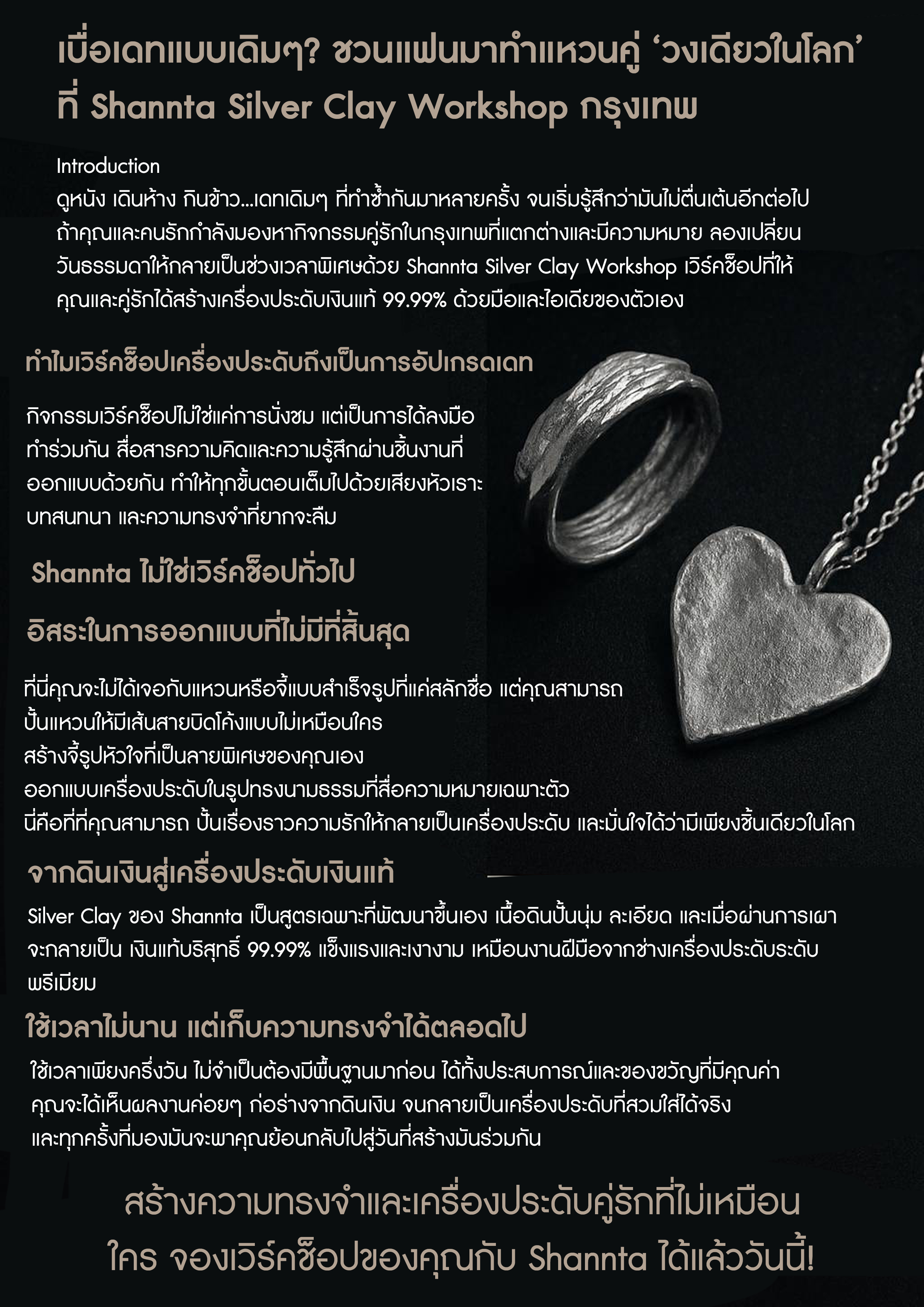 สร้างความทรงจำและเครื่องประดับคู่รักที่ไม่เหมือนใคร จองเวิร์คช็อปของคุณกับ Shannta ได้แล้ววันนี้ จองเลย!